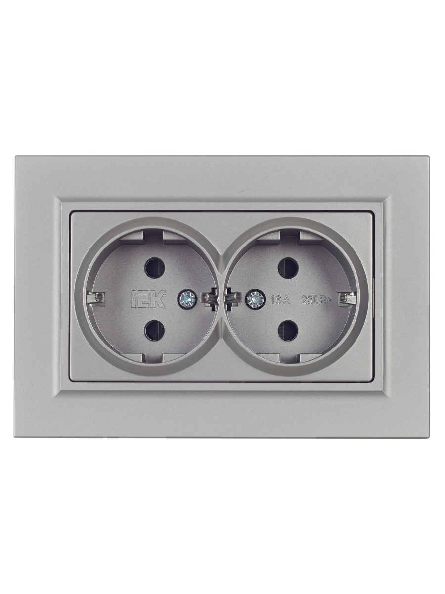 Купить BRITE Розетка 2-местная с заземлением с защитными шторками 16А в сборе РСш12-3-БрС сталь | код BR-R24-16-K46-F | IEK | Магазин электрики - электрооборудование от разных производителей.