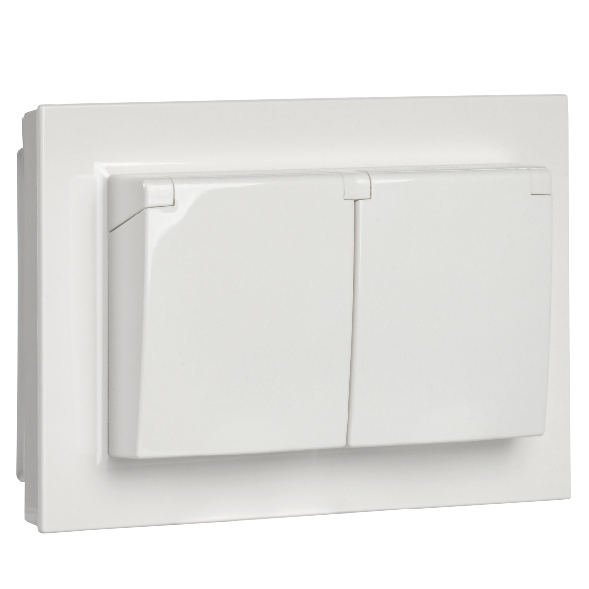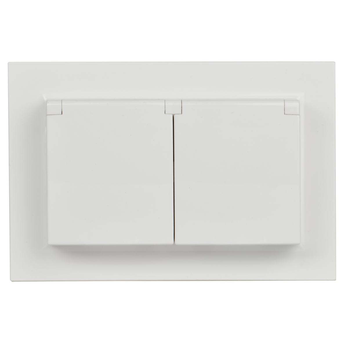 BRITE Розетка 2-местная с заземлением с защитными шторками и крышкой 16А в сборе IP44 РСбш12-3-44-БрБ белый