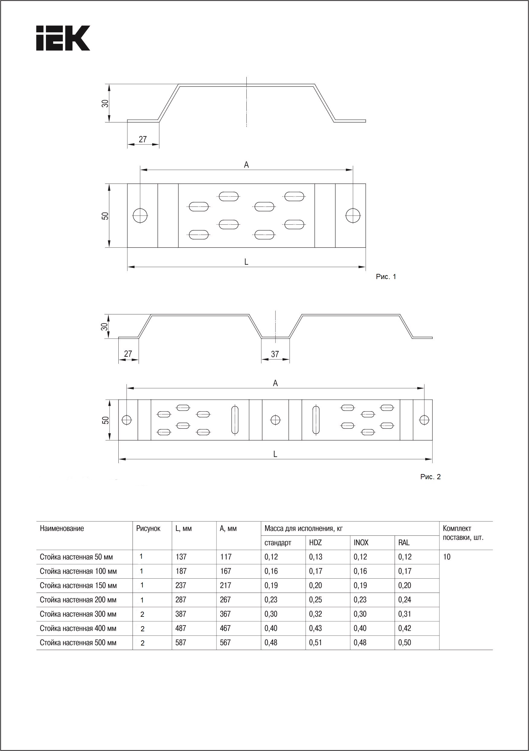 Стойка настенная СНП500 HDZ | код CLW10-SNP-500-M-HDZ | IEK