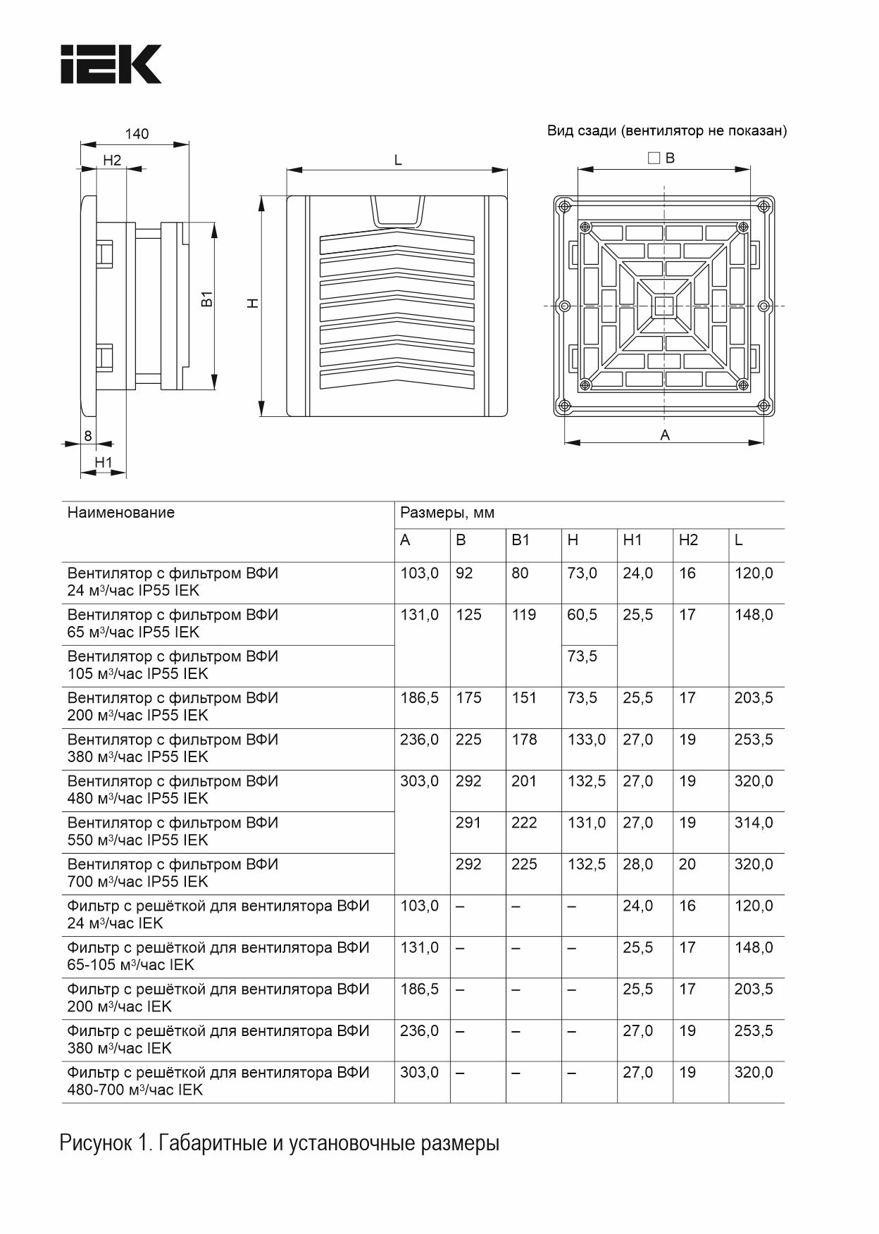 Наименование в прайсе производителя Вентилятор с фильтром ВФИ 380 м3/час IP55