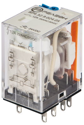 RP4.32.9.048.05 Промежуточное реле 2 перекидных контакта 12А (= 48В DC) блокируемая кнопка проверки + светодиод | код RP432904805 | РЕЛЕОН