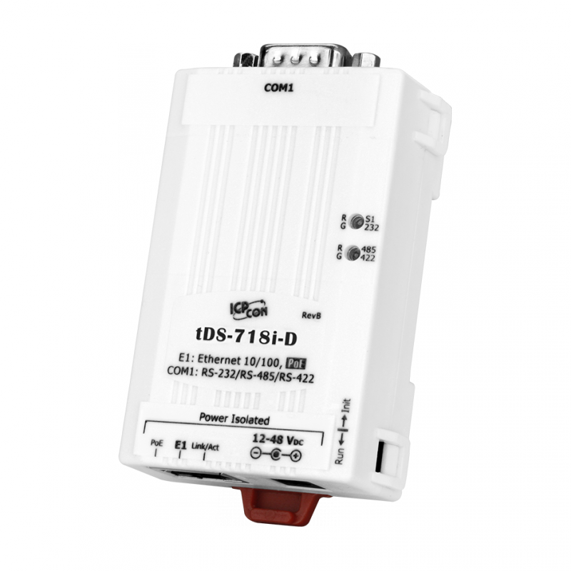 tDS-718i-D CR Tiny Device Server with PoE, Power Isolation and 1 RS-232/422/485 Port (Male DB-9, RoHS) | код 00-06125534 | ICP DAS