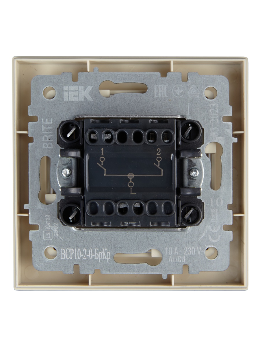 BRITE Выключ. 2-кл. 10А в сб. ВСР10-2-0-БрКр беж. IEK | код BR-V20-0-10-K10-F | IEK