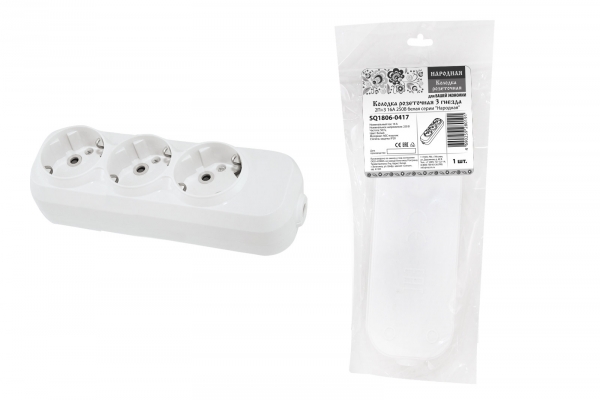 Колодка розеточная 3 гнезда 2П+3 16А 250В белая серии Народная | код SQ1806-0417 | TDM НАРОДНЫЙ