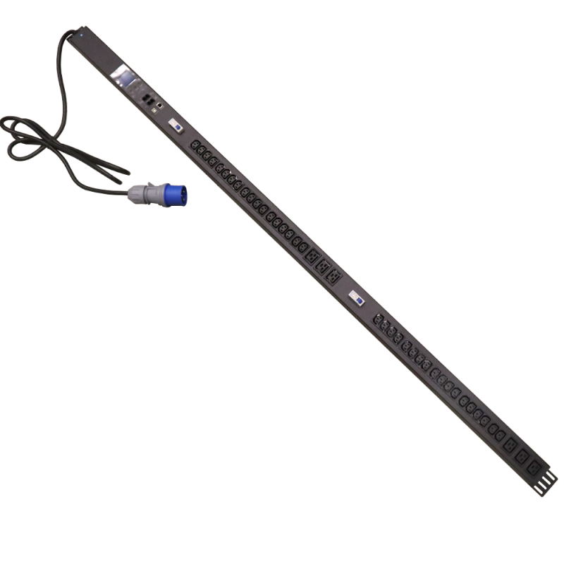 Блок розеток вертикальный, 1-фазный с автоматом, общий мониторинг по RS-485 и IP, 32A / 250V, 6xC19 + 36xC13, шнур 3.0 м, разъем IEC309 | код TWT-PDVMT1-6x36-32A | TWT