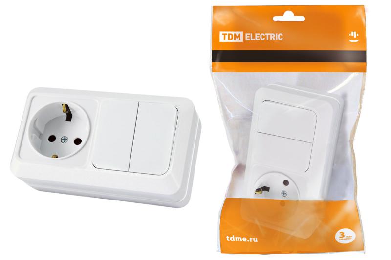 Блок комбинированный выкл. 2-кл. 10А + розетка 2П+З 16А 250В БКВР IP20 белый Ладога TDM | код SQ1801-0102 | TDM