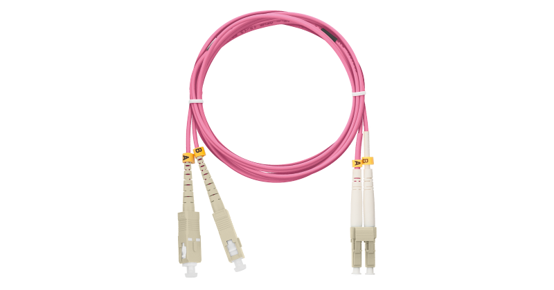 Шнур NIKOMAX волоконно-оптический, переходной, многомодовый 50/125мкм, стандарта ОM4, SC/UPC-LC/UPC, двойной, LSZH нг(A)-HFLTx, 2мм, маджента, 3м | код NMF-PC2M4C2-SCU-LCU-003 | NIKOMAX
