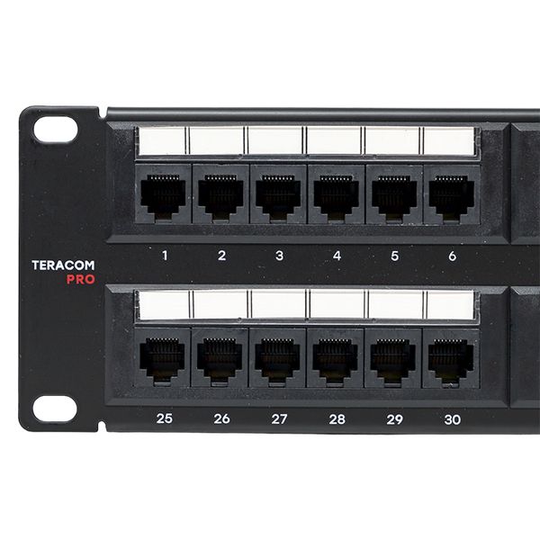 Патч-панель TERACOM PRO 19 Cat.6 2U неэкранированная UTP 48 портов RJ-45 Dual IDC | код TRP-PPNL-6UTP-2U48 | EKF