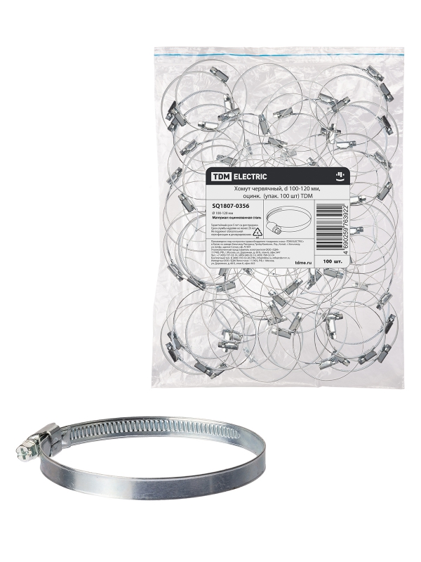 Хомут червячный, d 100-120 мм, оцинк (упак. 100 шт) TDM | код SQ1807-0356 | TDM