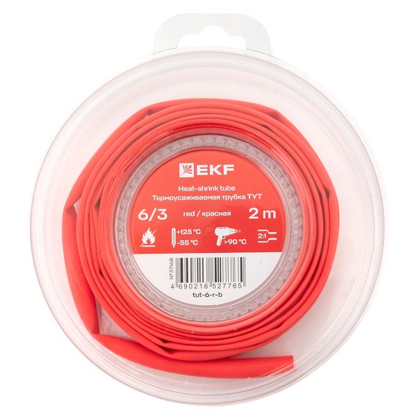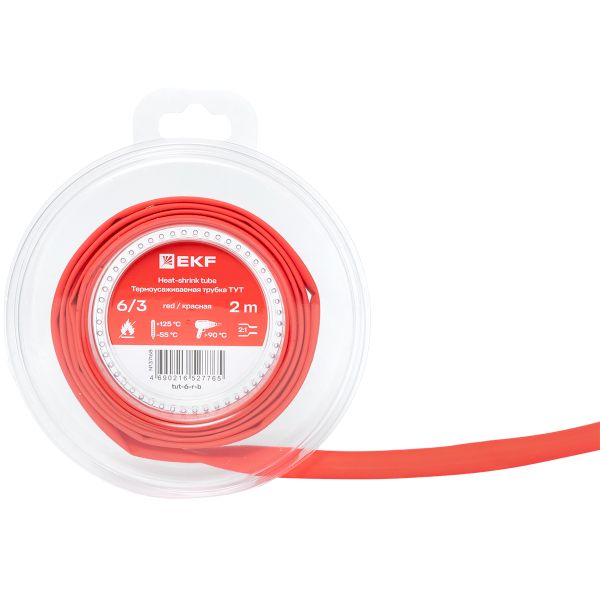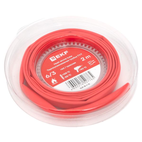 Термоусаживаемая трубка ТУТ нг 6/3 красная ролик 2 м EKF | код tut-6-r-b | EKF