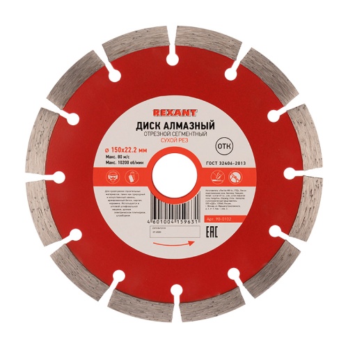 Диск алмазный отрезной сегментный 150x22.23х2x10 мм REXANT | код 90-0102 | REXANT