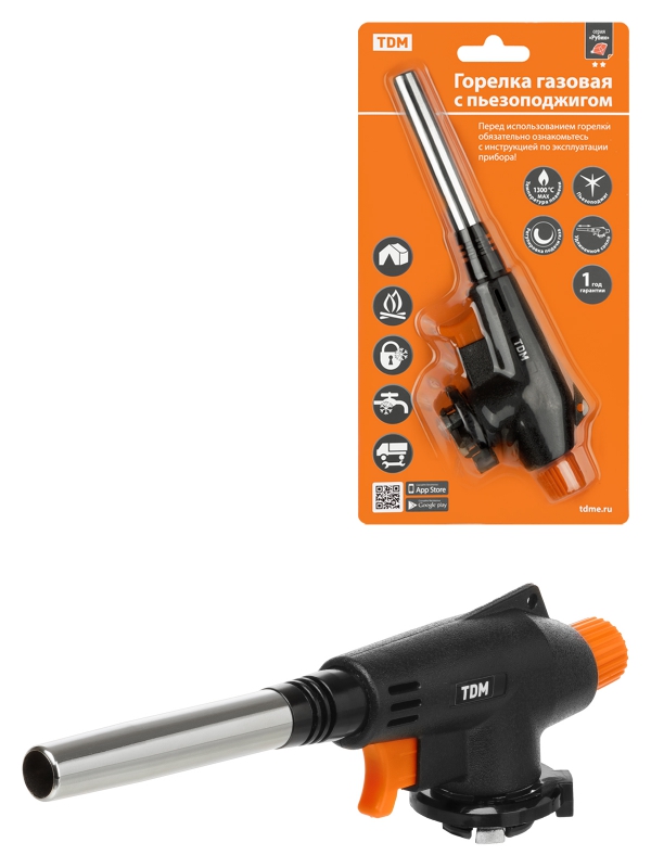 Горелка газовая удлин., ствол, регулятор подачи, пьезоподжиг, бутан, блистер, 1 шт., Рубин TDM | код SQ1041-0103 | TDM