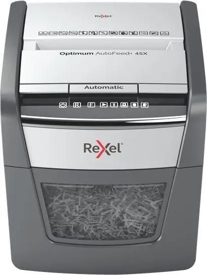 Шредер Rexel Optimum AutoFeed 45X черный с автоподачей (секр.P-4) фрагменты 45лист. 20лтр. скрепки скобы пл.карты | код 1481621 | REXEL