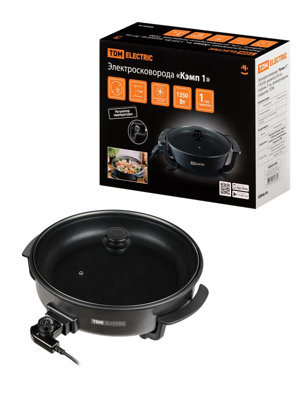 Электросковорода Кэмп 1, 1350 Вт, диаметр 30 см, глубина 7 см, антипригарное покрытие, TDM | код SQ4020-0001 | TDM
