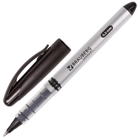 Ручка-роллер BRAUBERG Control, ЧЕРНАЯ, корпус серебристый, узел 0,5 мм, линия письма 0,3 мм, 141553 | код 141553 | BRAUBERG