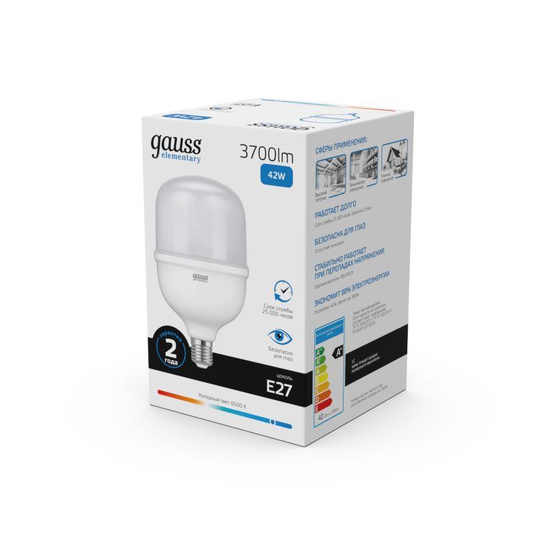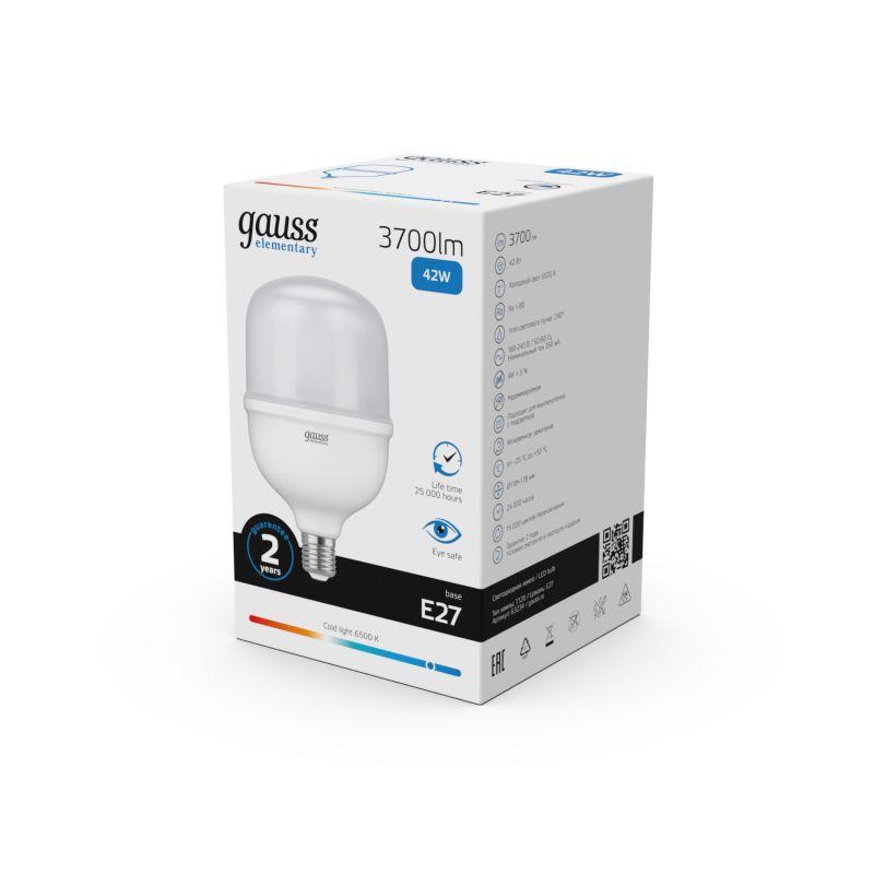 Лампа светодиодная Elementary 42Вт T120 цилиндр 6500К холод. бел. E27 3700лм GAUSS 63234