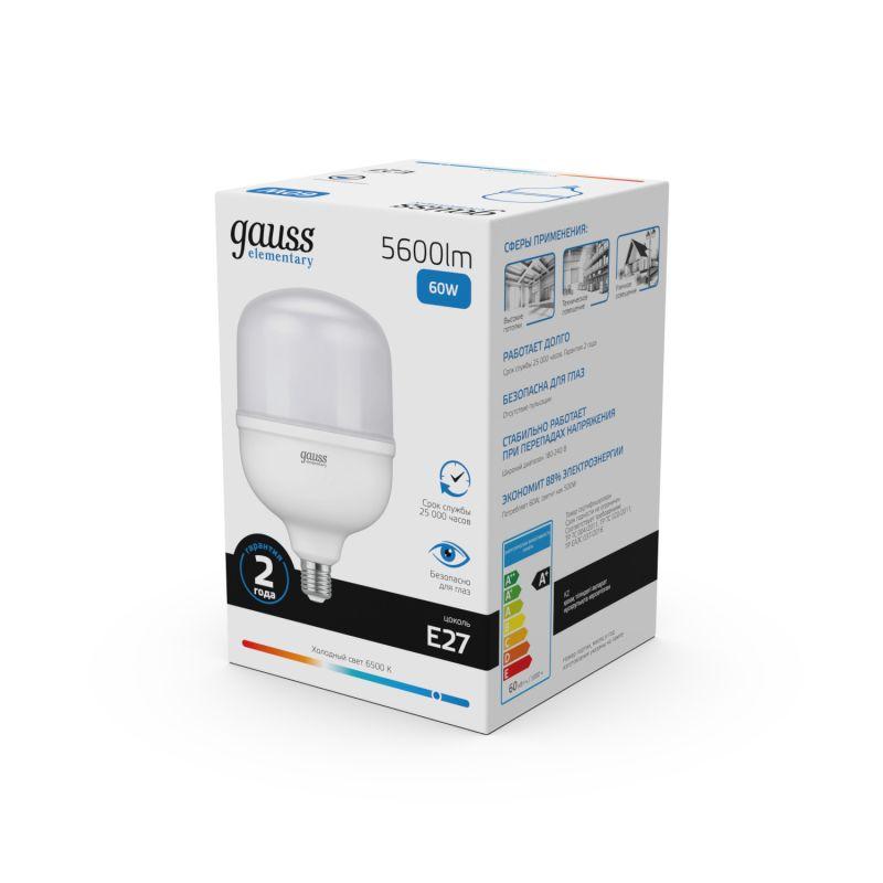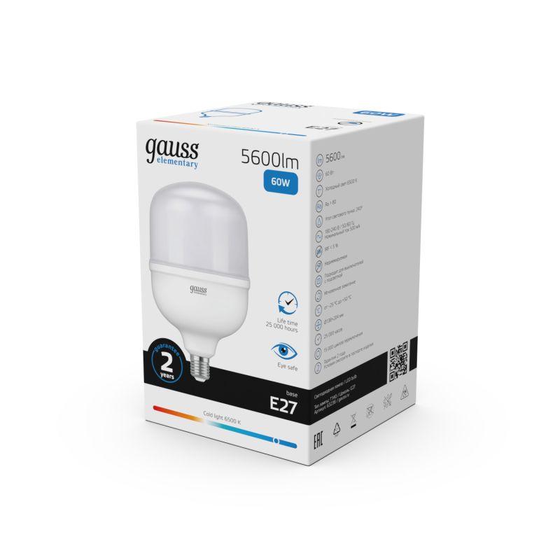 Лампа светодиодная Elementary 60Вт T160 цилиндр 6500К холод. бел. E27 5600лм GAUSS 63236