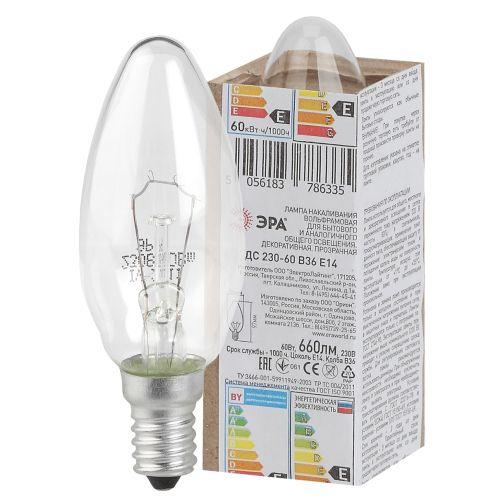 Лампа накаливания ДС 60-230-Е14 60Вт свеча (B36) 230В Е14 ЭРА Б0039126