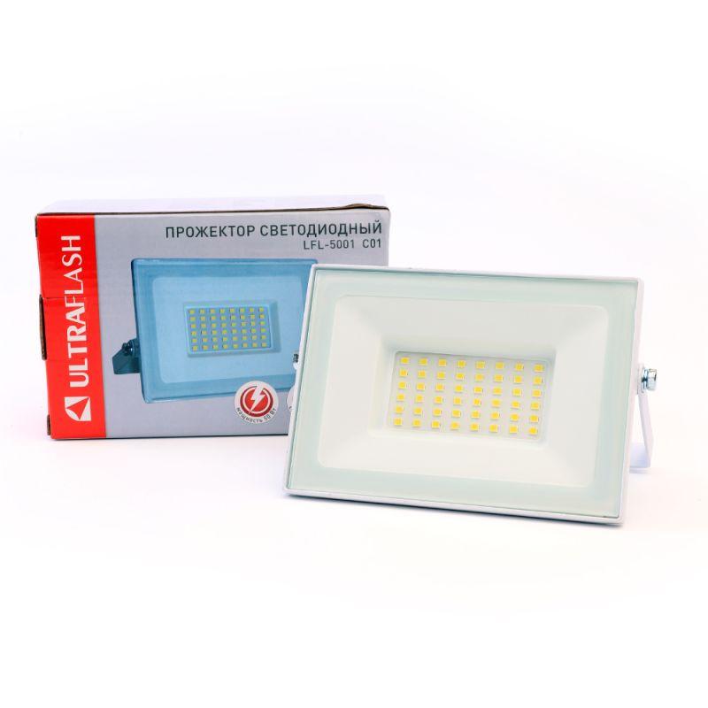 Прожектор LFL-5001 C01 (LED SMD 50Вт 230В 6500К) бел. Ultraflash 14130
