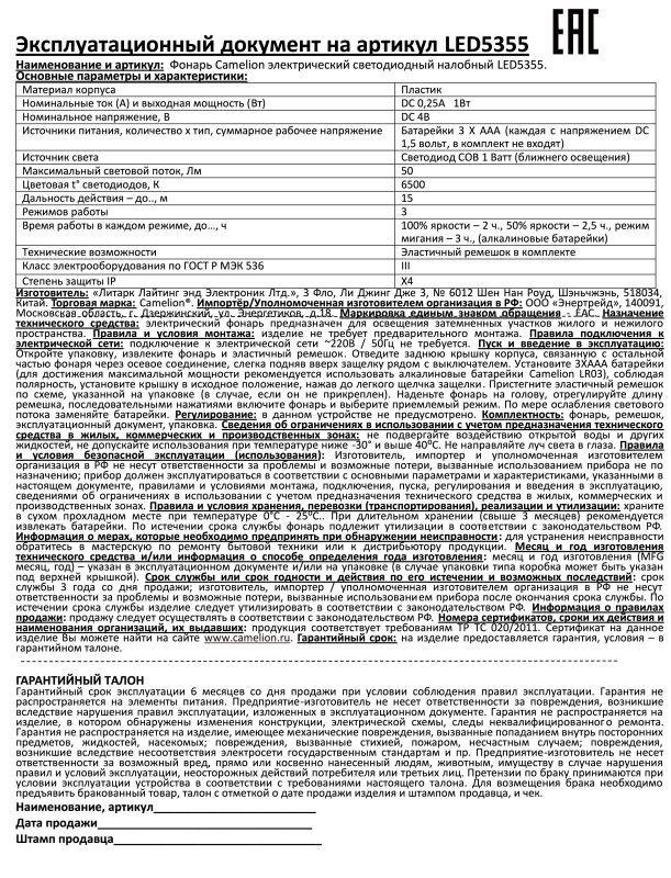 Производитель Camelion