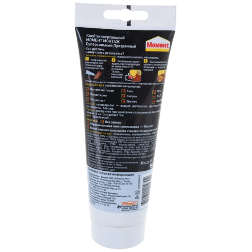 Клей монтажный "Момент монтаж суперсильный МВп-70" 185г прозр. Момент Б0022978
