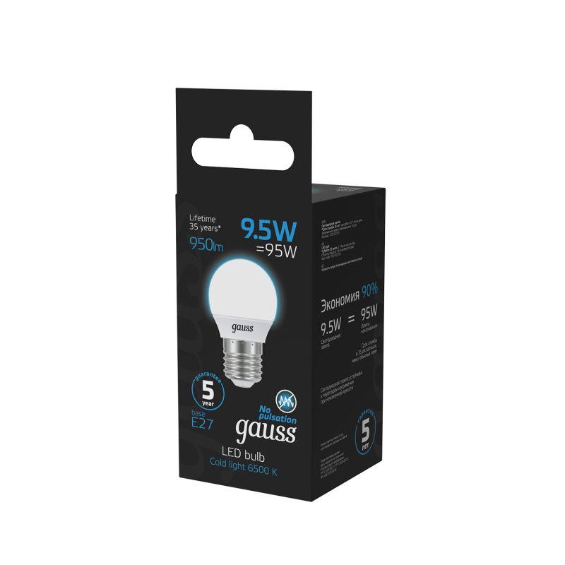 Лампа светодиодная Black 9.5Вт P45 шар 6500К холод. бел. E27 950лм GAUSS 105102310