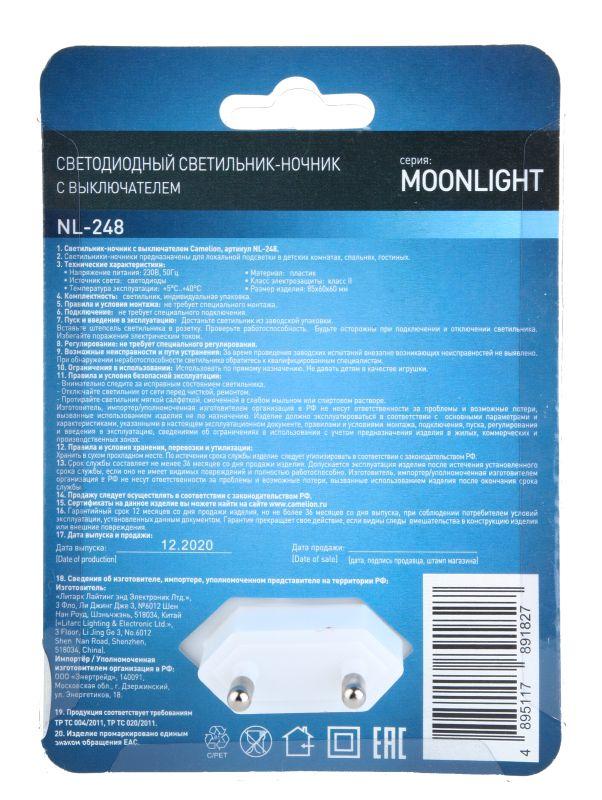 Светильник светодиодный NL-248 220В ночник с выкл. бел. Camelion 14355