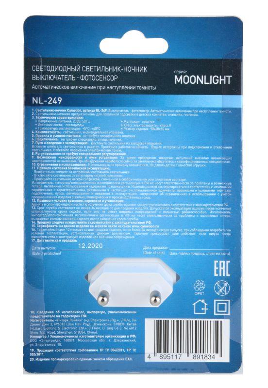 Светильник светодиодный NL-249 220В ночник с фотосенсором бел. Camelion 14356