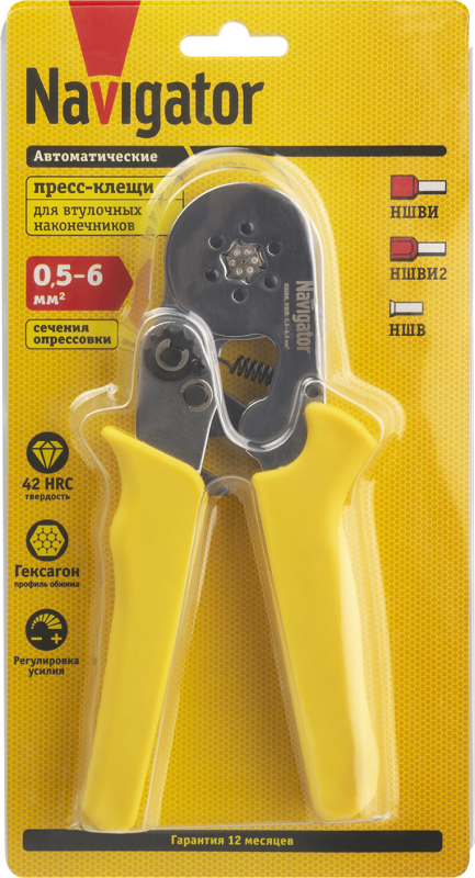Пресс-клещи 80 366 NHT-Pkv01-D-6 для втулочных 6кв.мм Navigator 80366