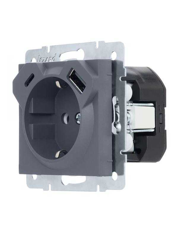 Розетка Vesna с заземл. TC+USB разъем графит LEZARD 742-3488-181TC