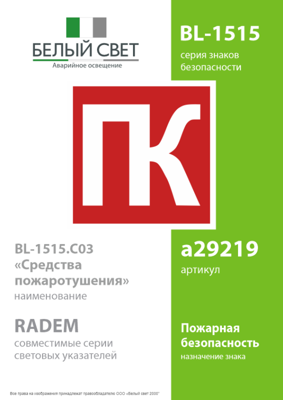 Знак безопасности BL-1515.C03 "Средства пожаротушения" Белый Свет a29219