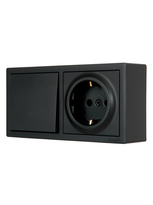 Блок ОП LETO (1-кл. выключатель проходной + 1-м розетка с заземл.) горизонт. черн. бархат LEZARD 752-4200-170BVP