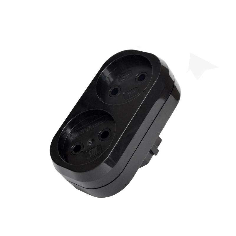 Разветвитель 2-м без заземл. 10А плоский черн. UNIVersal 1932