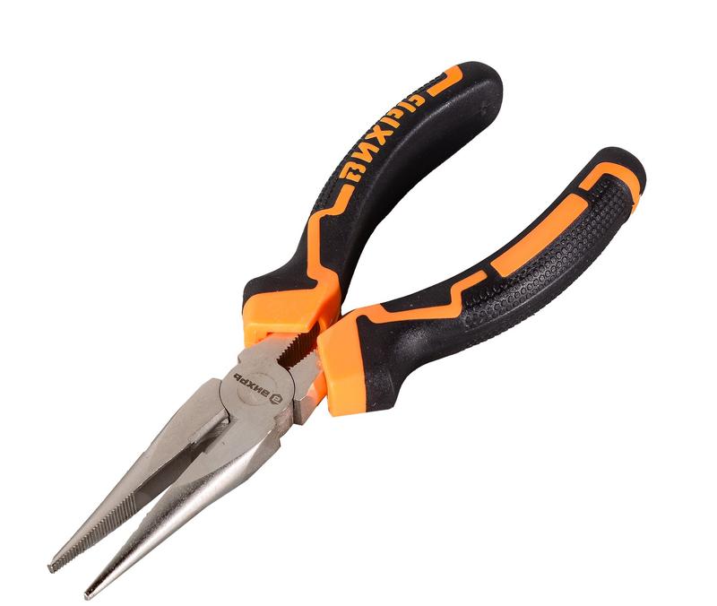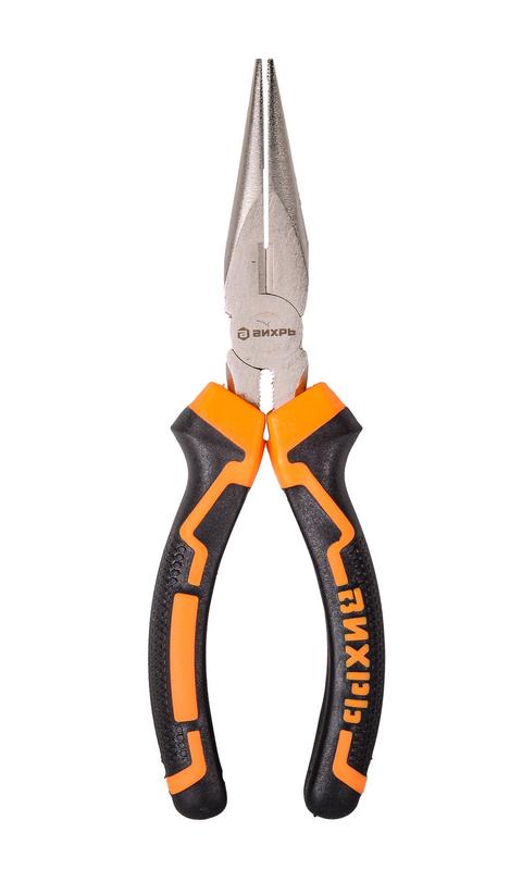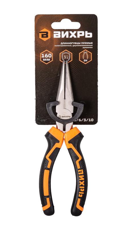 Длинногубцы прямые 160мм никелированные двухкомпонентн. рукоятки Вихрь 73/6/3/10