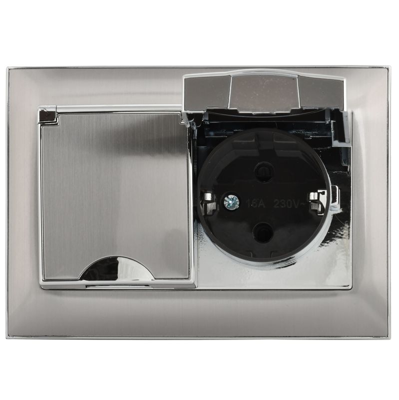 Розетка 2-м SKANDY 16А IP44 с крышкой в сборе SK-R12N никель IEK SK-R26-16-44-K50-F