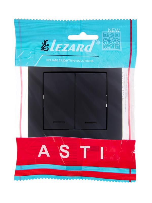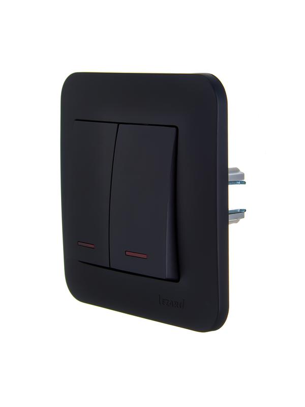 Выключатель 2-кл. 1п СП ASTI 10А IP20 с подсветкой в сборе черн. бархат LEZARD 7081-4242-112