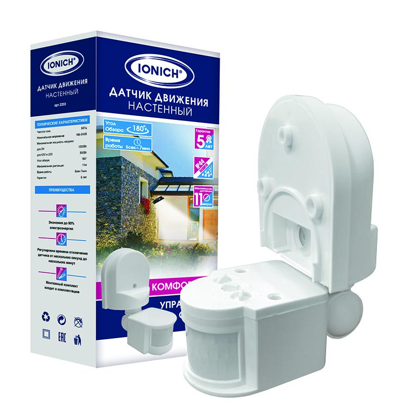 Датчик движения настенный 11м 1200Вт 7мин бел. IONICH 2203