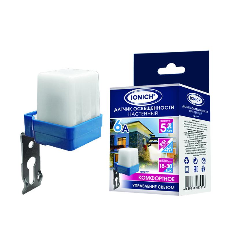 Датчик освещенности настенный 6А 8-30 Lux бел. IONICH 2197