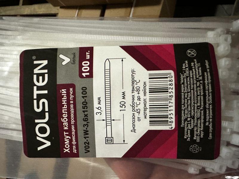 Хомут кабельный V02-1W-3.6х150-100 3.6х150 нейл. бел. (уп.100шт) Volsten 9499