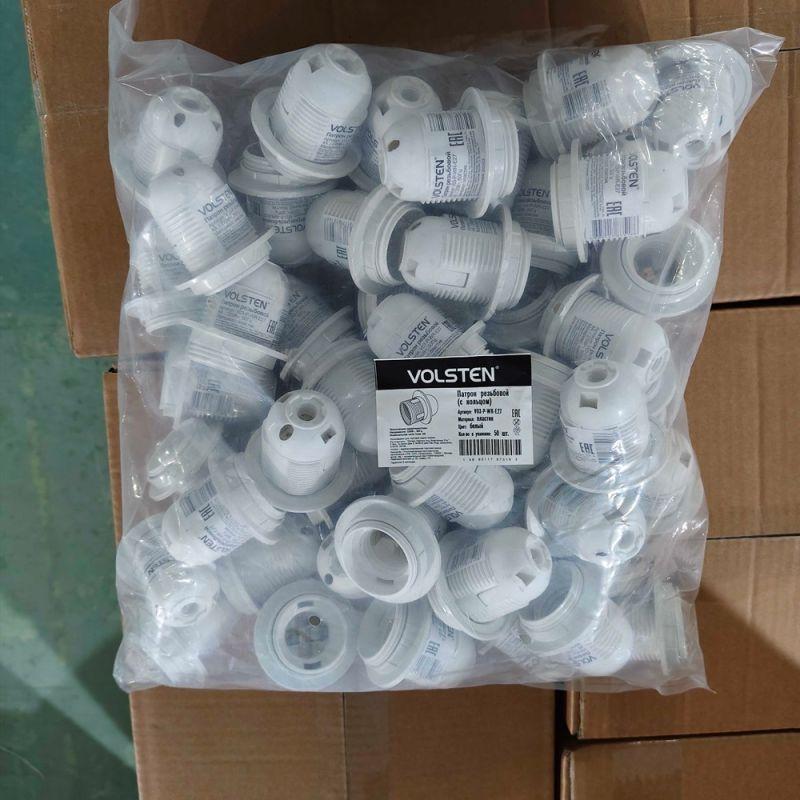 Патрон резьбовой V03-P-WR-E27 E27 220В 4А с кольцом под лампу пласт. Volsten 12216
