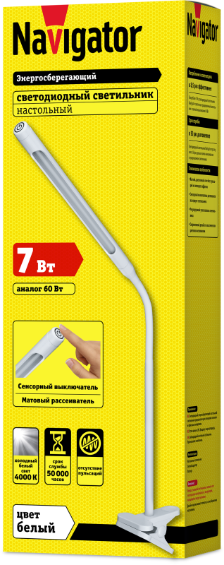 Светильник 61 036 NDF-C004-7W-4K-WH-LED прищепка; гибкий; бел. Navigator 61036