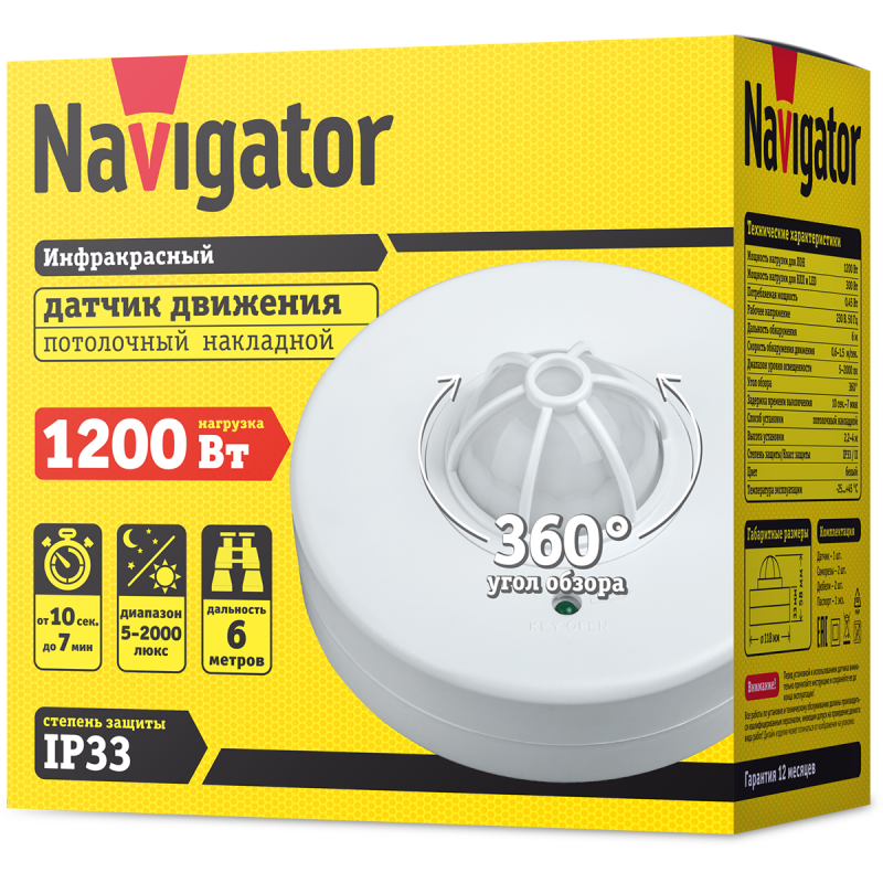 Датчик движения инфракрасный 71 963 NS-IRM02-WH Navigator 71963