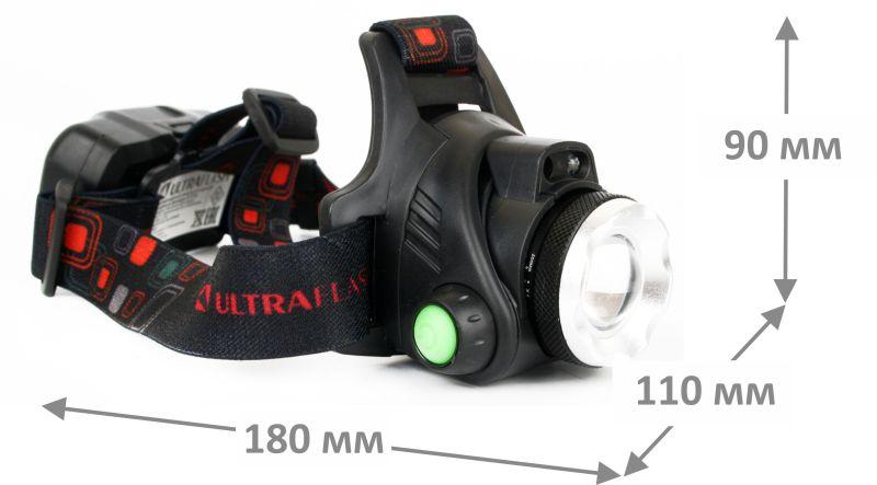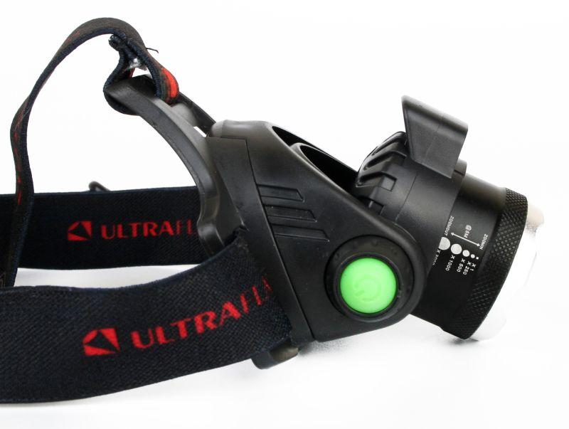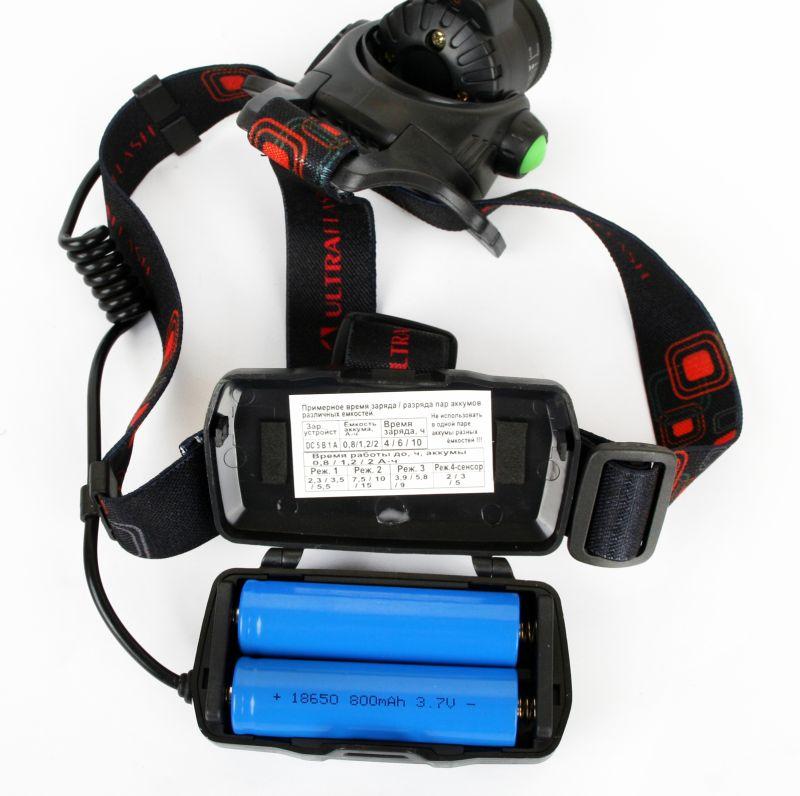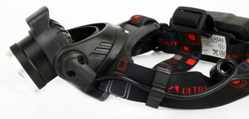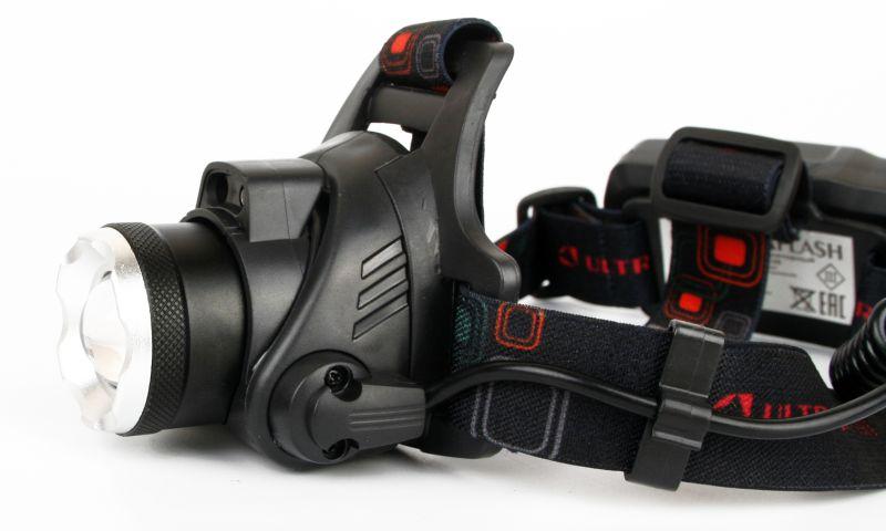 Фонарь аккумуляторный налобный E1336 1LED 4Вт фокус 4 режима аккум. 3.7В сенсорный черн. (бокс) Ultraflash 13906