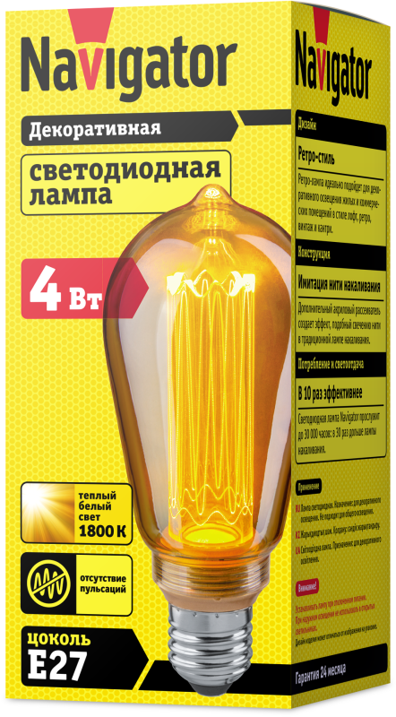 Лампа светодиодная 14 232 NLL-SC17-ST64-4-230-1.8K-E27-PMMA прозрачная 1800К тепл. бел. E27 200лм 220-240В Navigator 14232