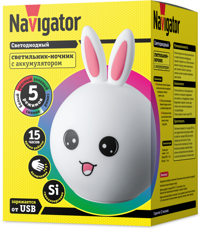 Светильник NNL-SW06-WH акк. Li-ion 1.2Ач USB 5В Зайчик NAVIGATOR 14324