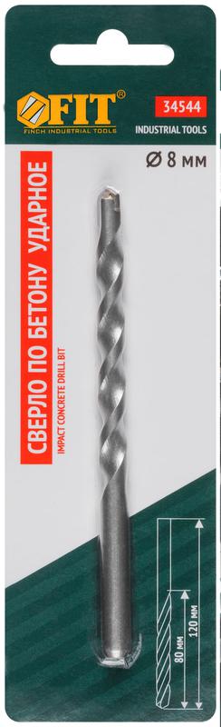 Сверло победитовое ударное, цилиндрический хвостовик (для бетона, кирпича) 8х120 мм | код 34544 | FIT