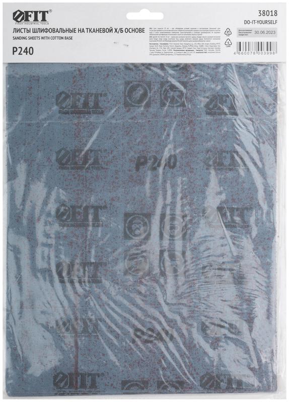 Листы шлифовальные на тканевой основе, алюминий-оксидный абразивный слой 230х280 мм, 10 шт P240 | код 38018 | FIT