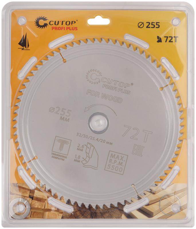Диск пильный по дереву с тефлоновым покрытием 72Т, Profi plus, 255x1,8/2,6x32/30/25,4/20 мм | код 75-25572Т | FIT