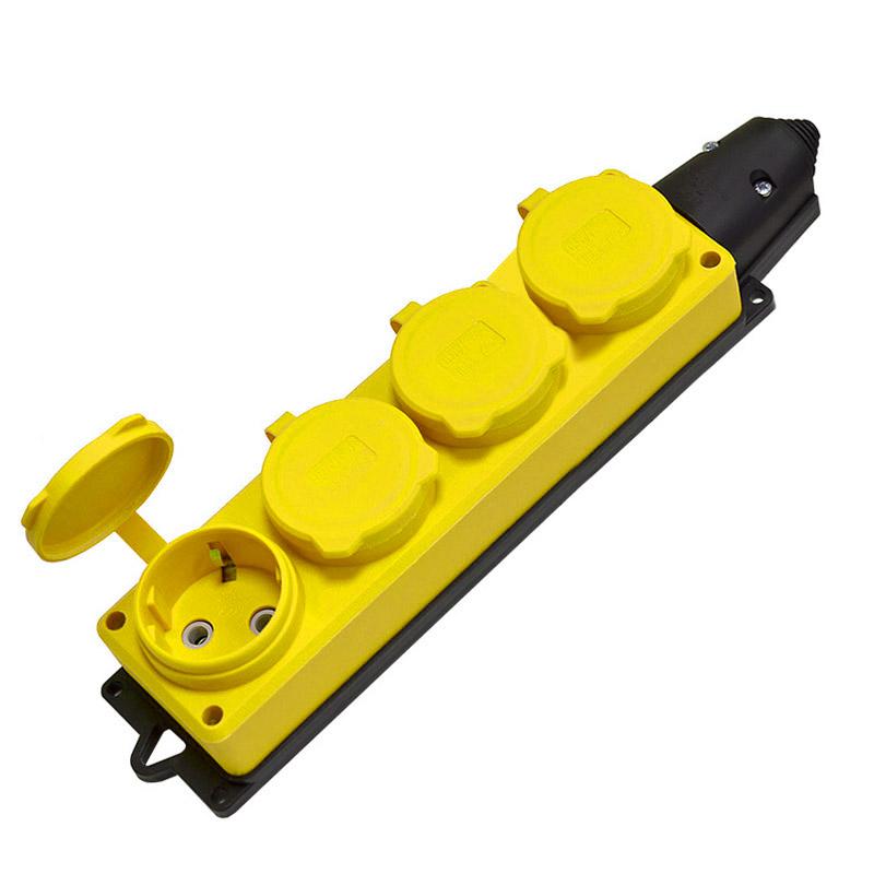 Колодка 4-х местная однофазная с заглушками КОМПАКТ каучук желтый | код 3084 | Universal