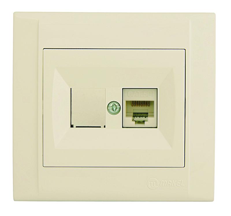 Defne Розетка компьютерная CAT5e + гнездо бежевая | код 42010035 | Makel
